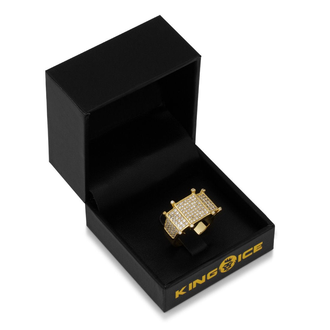 Covered in VVS Diamond Simulates, the new 14K Gold Triple Prong Ring is perfect for any outfit. With five sections covered in stones, its shine is never ending. The .925 Sterling Silver ring is plated with 14K Gold for a nice pair with the clear stones.