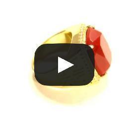 14K Gold Red Coral Crown Julz Ring (.925 Sterling Silver)