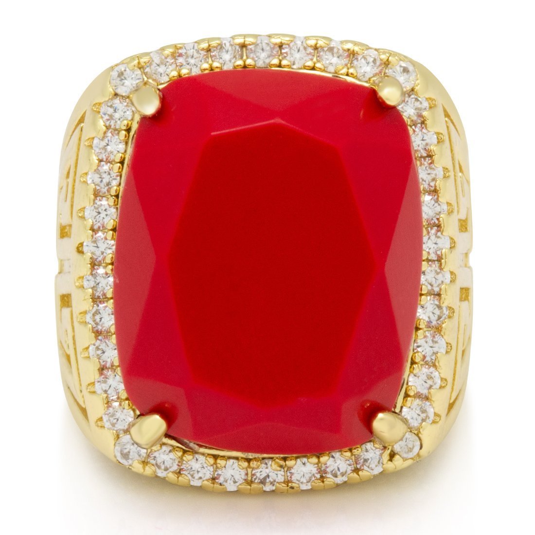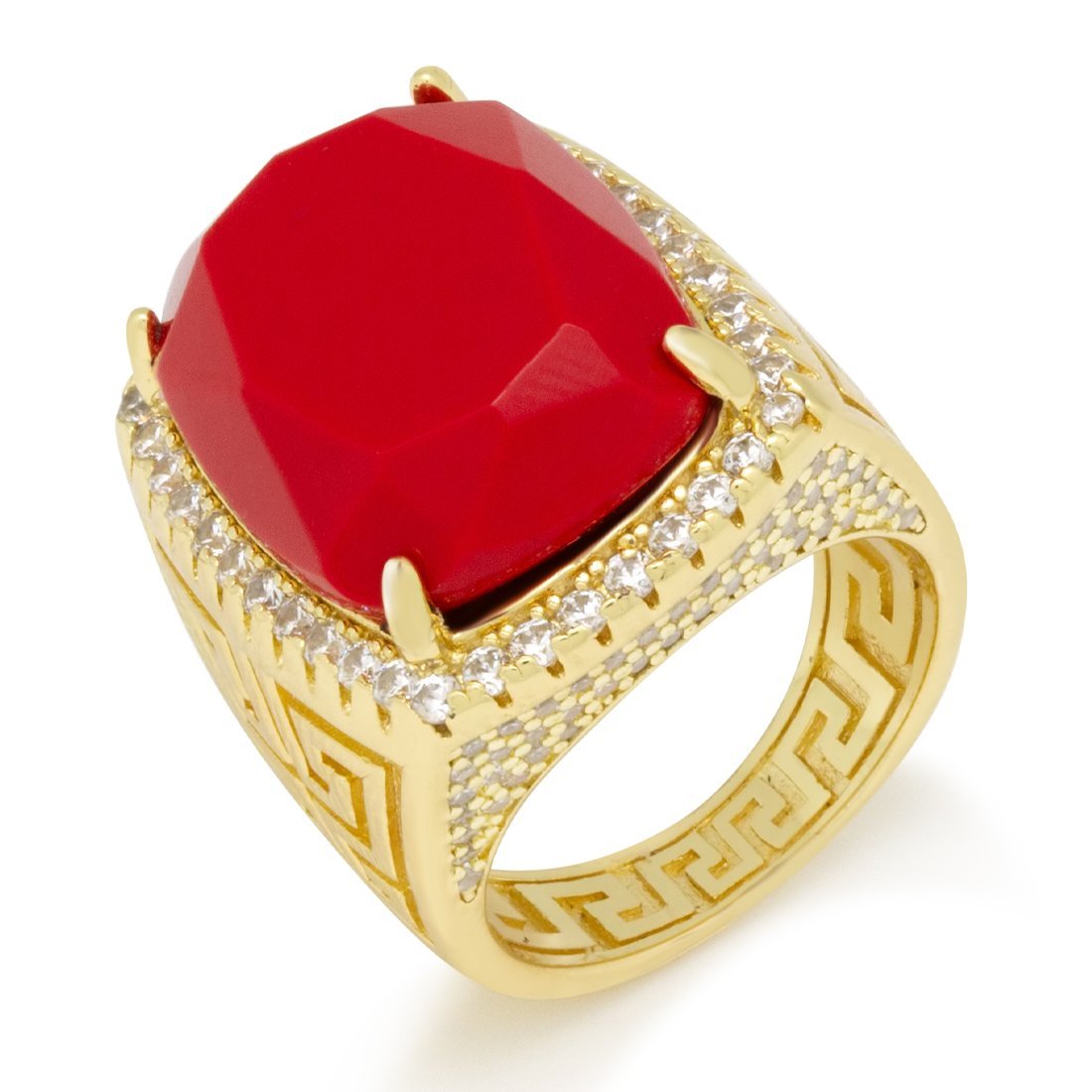 Crowned with a Red Coral gemstone, each Crown Julz Ring aims to represent the might and wealth you’ve come to amass. With clear CZ stones covering the exterior of each Red Coral gemstone, the Jewel represents the heart of your wealth while the 14K gold plating add value and shine to this ring.