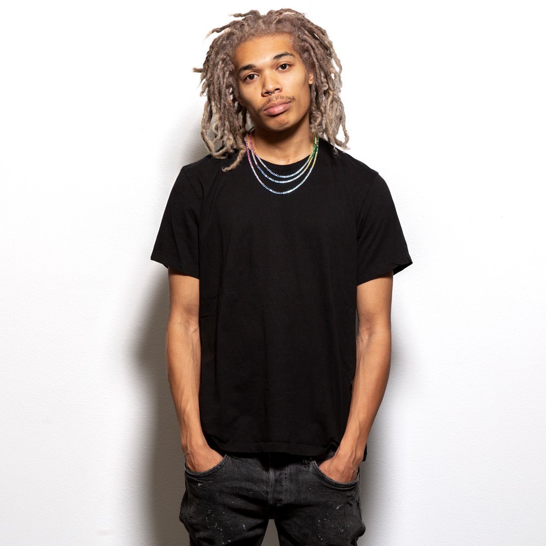 You can now sport the rainbow with King Ice's new 3mm Spectrum Tennis Chain. Multicolored VVS Diamond Simulates form the rainbow all around this piece. Each chain is available in 14K Gold plated and white gold plated finishes with 18", 20", and 22" lengths.