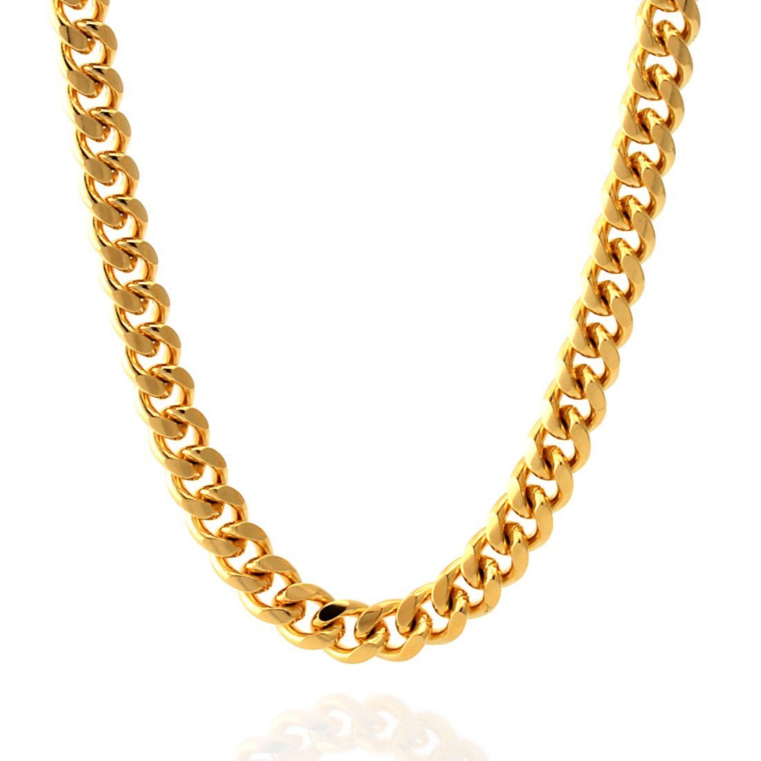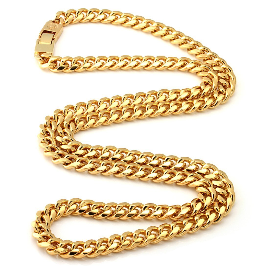 Don't forget to put on this chain when you're heading out. The 8mm Miami Cuban Curb Chain is plated with 14K Gold with rounder and thicker links. The chain has a fold over clasp for a comfortable and secure wear.