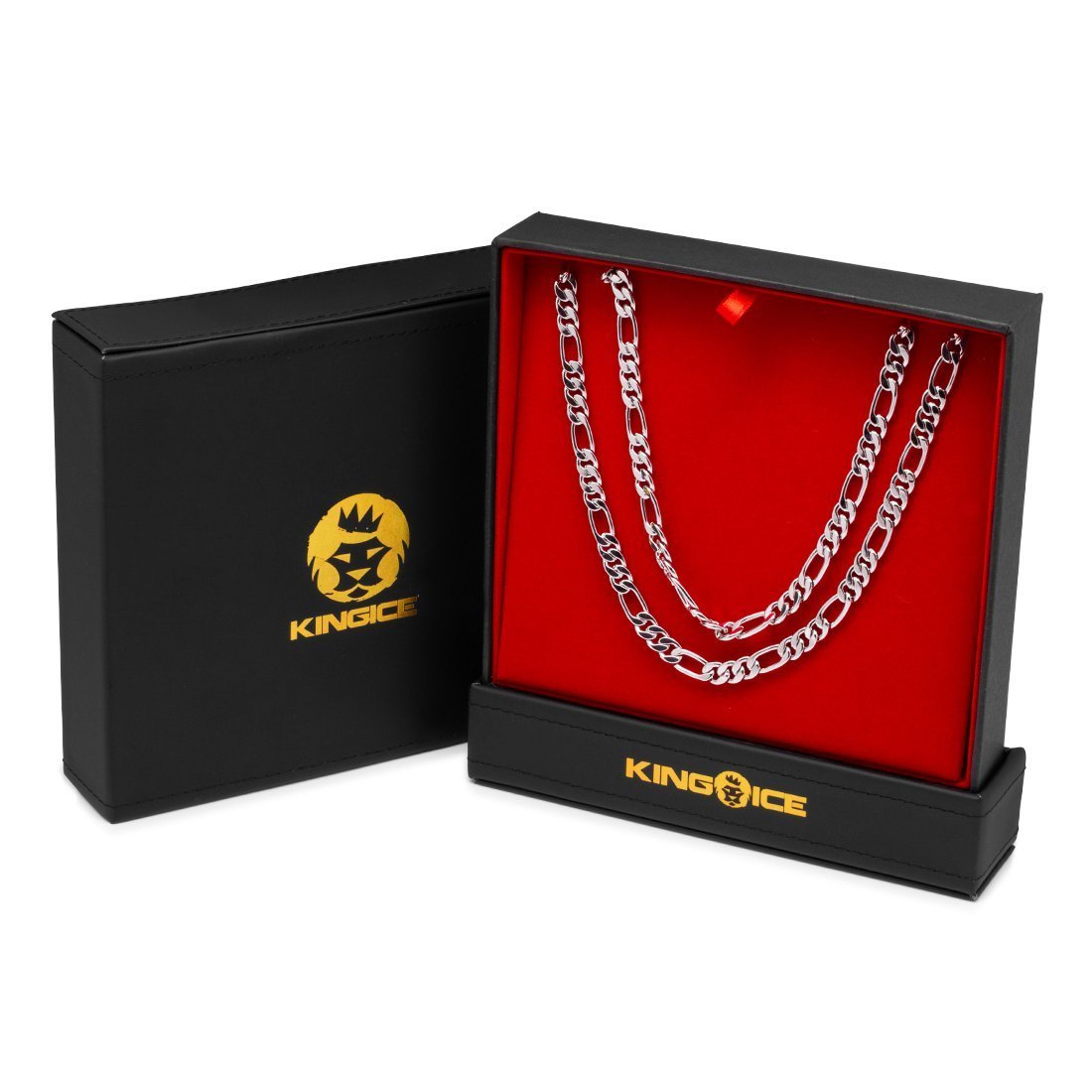 Among the many chains that became popular in hip hop, the Figaro chain is up there. King Ice's new 8mm White Gold Figaro Choker Set comes with two chokers, one 18" and the other 20" for the perfect length match. Its multi link style is plated with white gold for that class look.