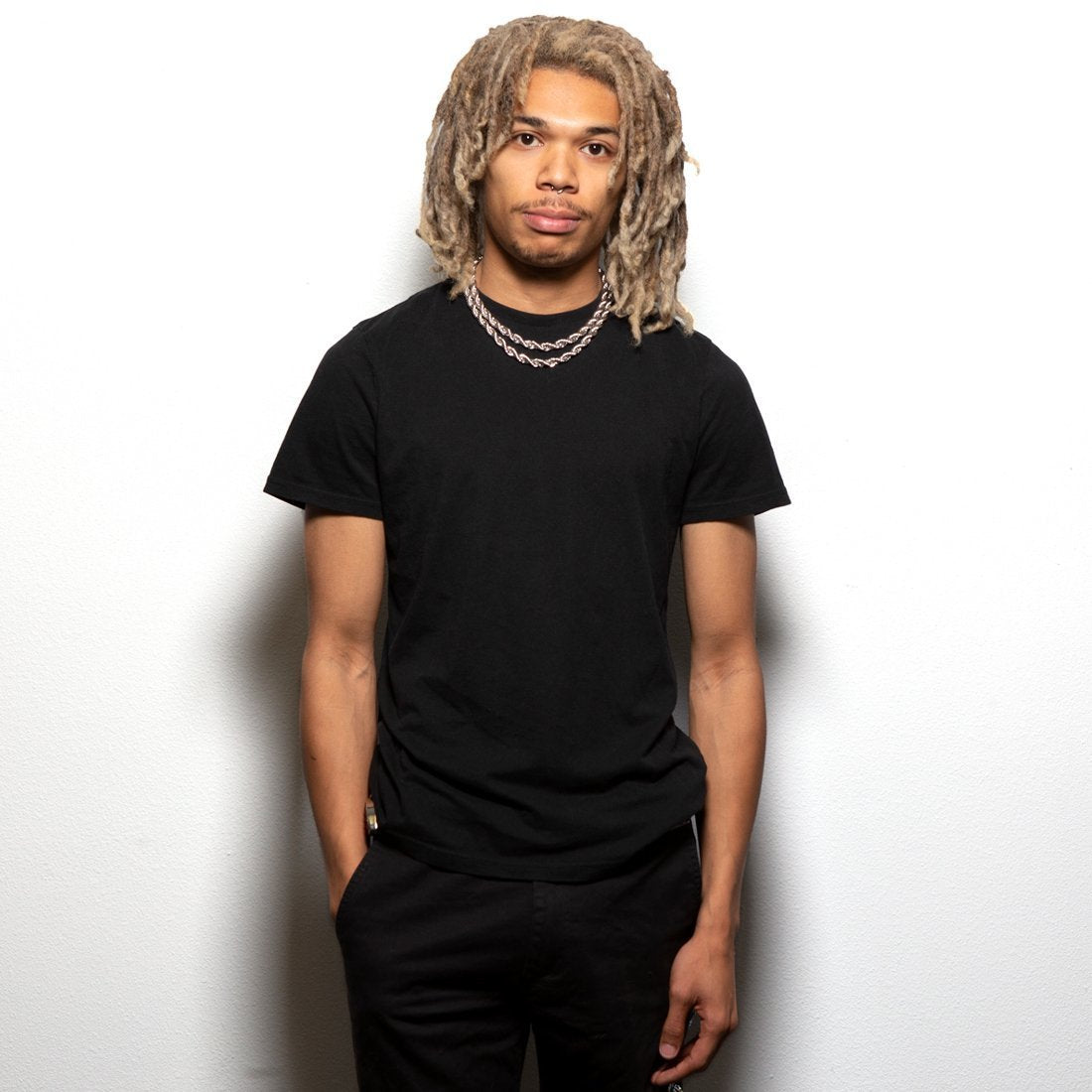 Rock the new 8mm White Gold Rope Choker Set like a member of RUN-DMC. back in the 80s. The new set provides an 18" and 20" rope chain choker for the perfect length match. Plated in white gold, the stainless steel chains have a lobster clasp for a secure wear.