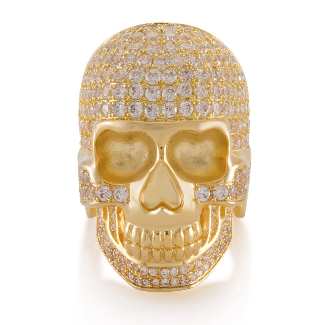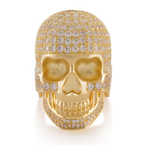 A powerful example of the pending doom, the 14K Gold and white gold plated Death Ring provides a vibrant display of character and charisma. Each piece uses VVS Diamond Simulates and is made out of .925 Sterling Silver. The ring has a 3D design to provide this timeless look.