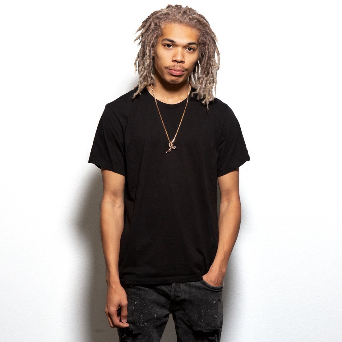 When a debt is owed, The Archangel of Reprisal ensures the debt is paid. Plated in 14K gold, each angel comes studded in clear, CZ stones along with its wings, while its black-plated AK-47 ensures its aim stays true and its punishment swift. Meanwhile, its Greek-key bale provides the perfect option for the 2.5mm, 20" Stainless Steel Franco chain included with each pendant.