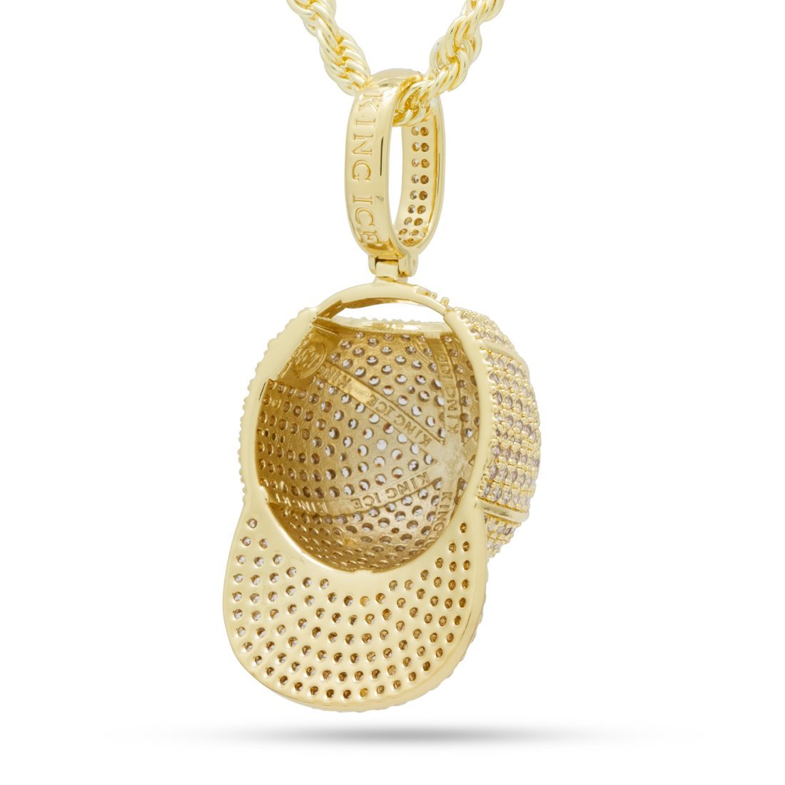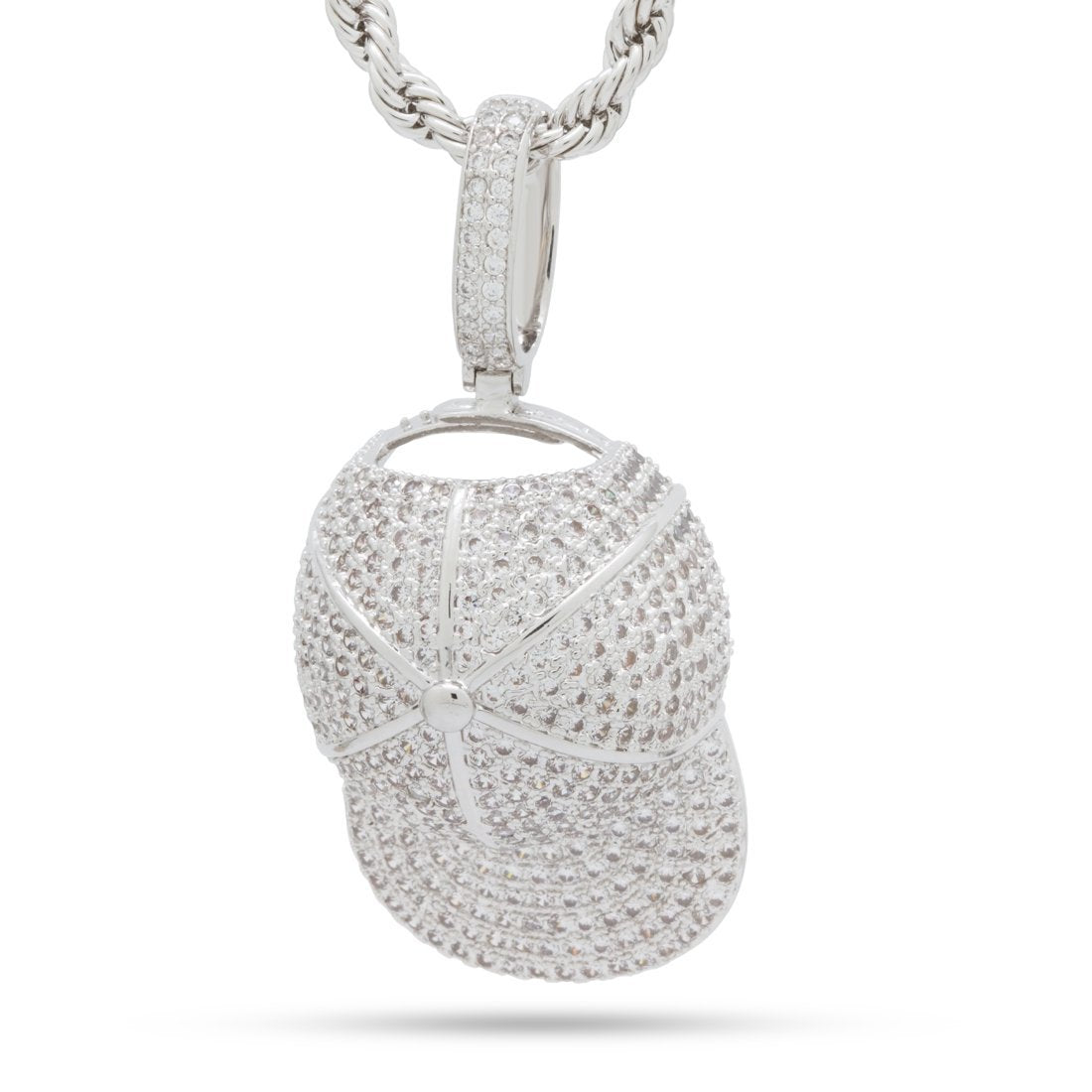 King Ice's new Baseball Hat Necklace is the definition of iced. The pendant has more than 400 VVS Diamond Simulates covering the panels and bill of the hat. The strap of the hat is detailed with its buttons. The necklace is dipped five times in 14K Gold plating and white gold plating for a flashy finish. Each pendant is paired with a 4mm, 20" Rope Chain.