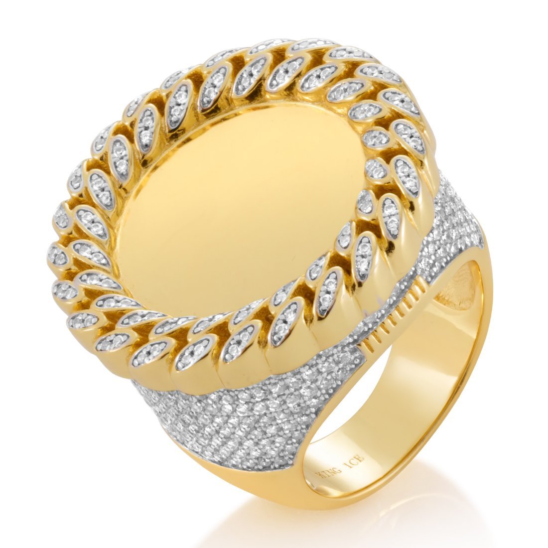 Providing a dominating look and appearance, the Cuban Curb Medallion Ring ensures a heavy, sturdy piece ideal for men after that large, chunky ring. The ring is iced with clear handset CZ stones. Each piece is made from .925 Sterling Silver.